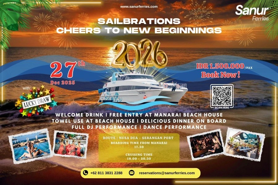 If you’re looking for a year end celebration that feels relaxed yet classy, Sailbrations by Sanur Ferries and Manarai Beach House is definitely something you should add to your holiday plans. This special event brings together the laid back vibe of a beach club with the charm of a sunset dinner cruise, complete with music, great food, and Bali’s unforgettable atmosphere.